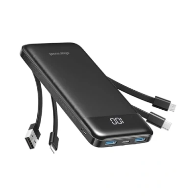 Charmast Power Bank with Built in Cables X 4, 10000mAh USB C Battery pack 6 Outputs 3 Inputs LED Display Type Powerbank Portable Charger Compatible Smartphones Tablets and More