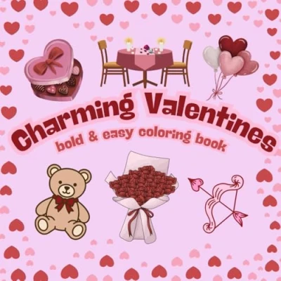 Charming Valentines: Valentines cute love bold and easy coloring book