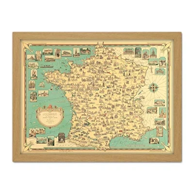 Chase 1935 Pictorial Map France Buildings Large Framed Art Print Poster Wall Decor 18x24 in