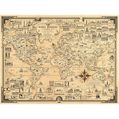 Chase 1939 Pictorial Map Chart Wonders World Large Print Poster Wall Art Decor Picture