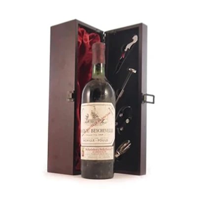 Chateau Beychevelle 1969 St Julien Grand Cru Classe vintage wine in a silk lined wooden box with four accessories, 1 x 750ml