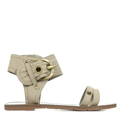 Taupe Flat Sandal with Ankle Buckle and Front Strap