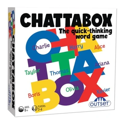 Chattabox is the wacky word game that will have everyone laughing and shouting out tip-of-the-tongue answers Got an ‘A’ and the topic is ‘Bands & Singers’? Shout “ABBA!” Got a ‘B’? Call out “Beyoncé!” But don’t hesitate - pause too long and you’ll face a penalty! Chattabox is fun for the whole family! Suits Ages 8+ 3-6 Players, Manufacturer: Cheatwell Games