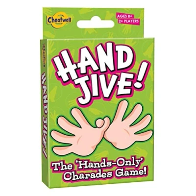 WHAT IS HAND JIVE? It's the manic miming charades game where you can only play using your hands, fingers and thumbs CAN EVERYONE PLAY? You can divide into two to four teams so as many people as you want can play HOW DO YOU PLAY? There are 4 mimes on each card graded from 1 to 4, and a successful hand mime earns the number of points attracted by that mime DO YOU ALL GET A TURN? The role of the Hand Actor should be rotated each time a team plays so that everyone gets a chance to take part, the Hand Actor has 30 seconds to act out the mime to the other members of their team using just their hands, no other parts of your body or props please WHO WINS? Keep a tally of the score and the first team to reach 20 points wins the game, Manufacturer: Cheatwell Games UK