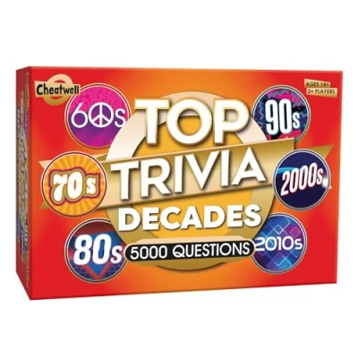 Cheatwell Games Top Trivia Decades Quiz Game 5000 Questions To Test Your Knowledge Of Music, Film, TV, Science, Food, Drink, Culture, General From The Last 60 Years, For Ages 14 Plus