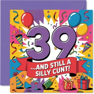 This card brings big laughs with its bright design and cheeky message - the bold '39' and playful graphics really set the mood for a fun celebration Features a vibrant multicolour motif and light-hearted humour that stands out from ordinary cards, perfect for anyone who loves a bit of banter Printed on quality gloss single-sided board with an uncoated inside for easy writing - no smudging when writing inside. Printed on 360 micron stock for a confident, premium feel Blank inside, so you can let loose with your own banter, story, or heartfelt birthday wishes. Supplied with a matching envelope for easy gifting Designed and printed in the UK using FSC-certified and fully recyclable materials - a top pick for a quality card with a conscience. Ideal for a mum or dad celebrating a milestone birthday