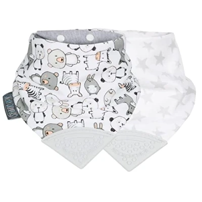 👶 STYLISH & REVERSIBLE TEETHING BIBS: This neckerchew offers the ultimate 2-in-1 bib and teether to solve your baby and toddlers multiple needs. The bibs are reversible so perfect for on the go, or to match with different outfits. 👌SOFT & ABSORBENT MATERIAL: Made from 100% cotton, these bibs are gentle on the skin and super absorbent with 3 layer absorbency to soak up drool, keeping your baby dry and happy. Very easy to clean and machine washable at 40C. ✅100% SAFE & HYGIENIC: Our teethers are BPA and phthalate free, made from food grade silicone. Rest assured they are perfectly safe for your little ones to chomp on throughout the day. 👨🍼LONG LASTING: With double adjustable poppers, these teething bibs can be worn from the age of 2 months to toddler so you can enjoy these baby bibs for longer with just one size! 🏆AWARD WINNING NECKERCHEWS: Our teething bibs have won multiple global awards. Recognised for its practical, stylish design, and functional use whilst your child is teething.