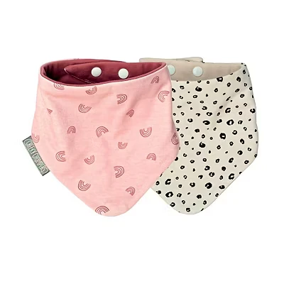 Cheeky Chompers Reversible Baby Dribble Bibs (2 pack) Toddler Feeding Milk Bandana Neckerchief Style Gift Set Neckerbibs (Leopard Spot & Rainbow Rose)