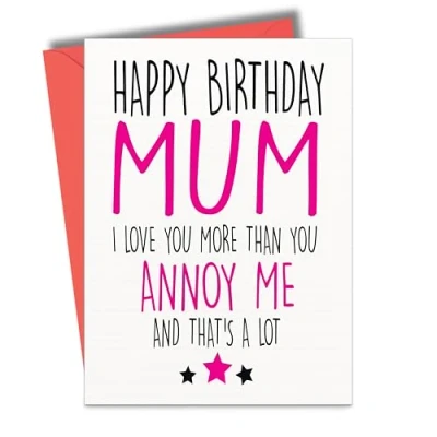 Funny birthday card for mums with cheeky humour Perfect from sons or daughters who love a laugh Printed on premium 280gsm card with a smooth matte finish Blank inside for your own personal message