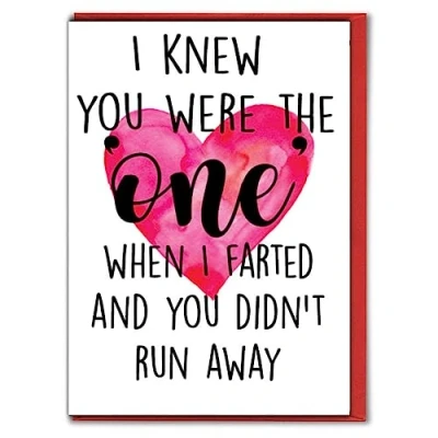 Hilarious romantic design for couples who keep it real Perfect for Valentine’s, anniversary or just because Printed on sturdy 280gsm smooth matte cardstock Blank inside for your own funny message