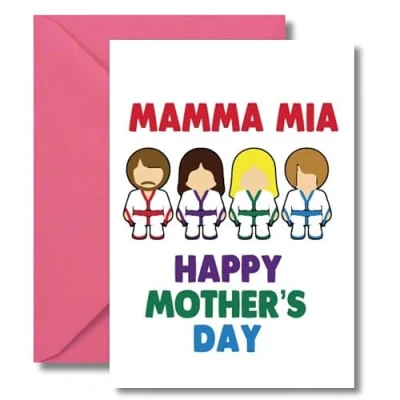 A playful Mother’s Day card inspired by iconic pop music with a bold mum themed design guaranteed to raise a smile. Perfect for mum from son or daughter as a fun Mother’s Day card for music lovers and pop culture fans. Printed on premium quality card stock and supplied with a matching envelope. Carefully packed in a hardback envelope to keep it flat and protected. Blank inside so you can write your own personal message.