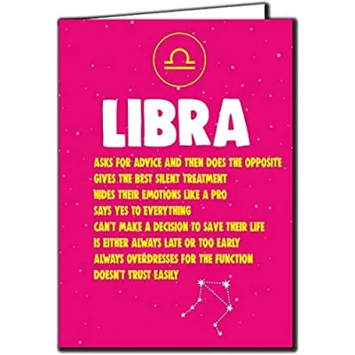 Cheeky Chops LIBRA ASTROLOGY Birthday Card Funny Him Her Dad Mum Brother sister friend LIBRA, Multi, 5x7