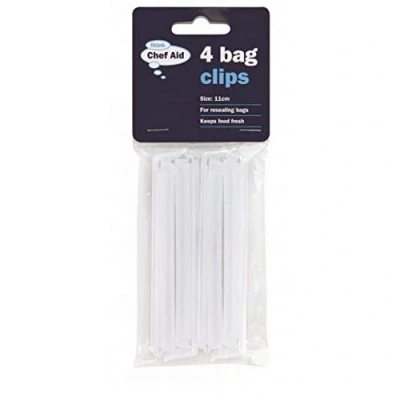 BAG CLIPS: These Chef Aid Bag Clips are perfect for re-sealing Bags to hold in the freshness for longer EASY TO USE: Simply Close the Clip over the Bag to create an air-tight seal 11CM WIDE: These Bag Clips are 11cm Wide which is a perfect size for resealing Crisp Bags and and Sharable snacks DISHWASHING SAFE: This Kitchen Tool Is BPA Free and Dishwasher Safe CHEF AID offers an extensive range of products for the Kitchen and Home that are affordable without compromising on quality