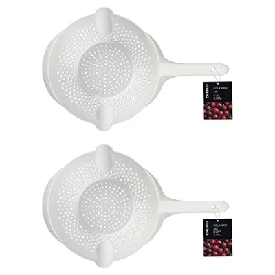 DURABLE PLASTIC CONSTRUCTION: Made from high-quality plastic for long-lasting durability, resistant to breaking or warping, BPA FREE EFFICIENT DRAINAGE HOLES: Evenly spaced holes allow quick and efficient draining, preventing water retention for faster food preparation 23CM SIZE WITH DUAL POURING LIPS: Features a 23 cm diameter and dual pouring lips for easy draining from either side, enhancing convenience ERGONOMIC HANDLE: Equipped with an ergonomic handle for a secure grip and comfortable use, even with wet hands LIGHTWEIGHT: Lightweight design ensures easy handling, and it is dishwasher safe for hassle-free cleaning