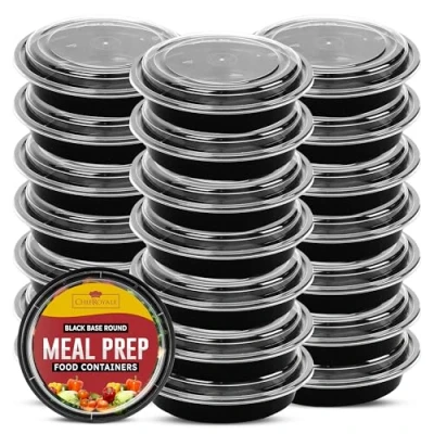 KEEPS FOOD FRESH: - Chef Royale Meal Prep containers are renowned for their premium quality. The airtight lids seal tightly to preserve food freshness for longer durations. Whether for the office, university, gym, home, travel, or picnics, these containers excel. Crafted from high-quality plastic, they are thicker, stronger, and more durable compared to cheaper alternatives. MEAL PREP & PORTION CONTROL: - This set of 20 stackable containers is perfect for portion-controlled diets, storing leftovers, salads, pastas, and healthy snacks. Each container is precisely proportioned to support a balanced diet plan, with a capacity of 24oz per container. Individual container size = 18.5cm (diameter) x 5.8cm (height). MICROWAVE, FREEZER & DISHWASHER SAFE: - Made from premium plastic and certified BPA-free, these containers are designed to withstand high and low temperatures. They are reusable and safe for use in the microwave, freezer, and dishwasher. The raised lids provide extra storage capacity, preventing compression of food. SAVE TIME & MONEY: - With a 20-pack of Bento Boxes featuring round compartments in each container, meal prep becomes effortless. Each container offers a total storage capacity of 24oz, perfectly portioned to keep you satiated and healthy. 20 STACKABLE SPACE-SAVING BOWLS: - These containers are not only great for meal prep but also ideal for storing pizza and bread dough for proofing. Their stackable design saves space in your cupboard when not in use.
