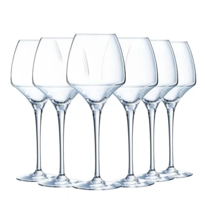 Sold in a box of 6 pieces Dimensions (cm): 9.06 x 9.06 x 23.1 Original Design Universal Crystal Wine Glasses Made in Arques, Northern France Professional quality glass