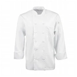 Chest Size: 48"-50" / 122cm-127cm. Polycotton. White. Stylish cloth-covered buttons - less likely to snag. Breathable Cool Vent back yoke - ideal for use in hotter kitchens. Unisex fit. Lightweight fabric (130 g/m²).
