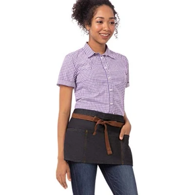 Durable Server Apron - Chef Works server aprons are pre-tested for strength and durability. Use as a work apron in front of house. Comfortable Fit - Contrasting waist tie fits to various body sizes with comfort and versatility. This is a unisex apron women and men can both wear. Easy to Wear - 12-inch H by 23-inch W aprons for men and women allow easy movement. This waist apron sits above the knees. Three Pockets - Center pocket, 7.5-inch H by 8.5-inch W, and right and lefts pockets, both 7.5-inch H by 6.5-inch W. Reinforced stress points to withstand wear and tear. Pocket Holds Tablet Device - Extra room for waitstaff needing server aprons for women or men to hold waitress accessories, phones, pens, and other items.