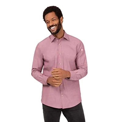 Chef Works Men's Chambray Shirt, Dusty Rose, XXL