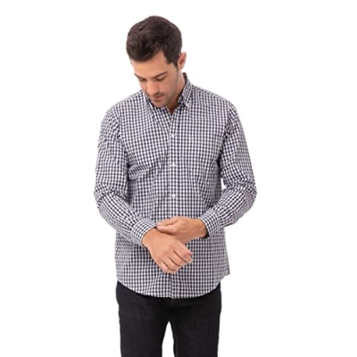 Chef Works Men's Gingham Dress Shirt, Navy & White Check, XXXL