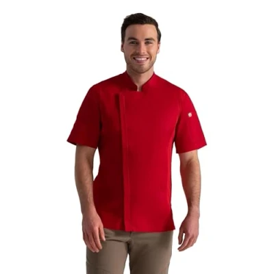 TAILORED FIT - Slim cut through the chest and body for a slightly relaxed but more fitted chef jacket. SUPREME COMFORT - A high quality, lightweight fine twill fabric that keeps you cool in a hot kitchen. Cool Vent Side Panels - Award-winning moisture and heat wicking fabric technology with side vents. MADE TO LAST - A chef coat for men can count on delivering quality craftsmanship with reinforced stress points. FUNCTIONAL POCKETS - Utility pocket on right sleeve and left thermometer pocket offer convenient storage.