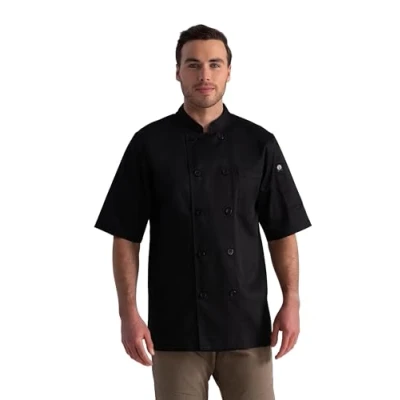 Easy Movement - Wider cut through the chest and wider sleeves for increased comfort and flexibility. Made To Last - Quality craftsmanship with reinforced stress points for longevity with daily wear. Durable Material - A comfortable blend of polyester and cotton pre-tested for strength and durability. Added Features - Double-breasted button front, left-chest patch pocket, left-sleeve thermometer pocket, and a stand-up collar. Ethical Sourcing - Chef Works cares about how our products are manufactured and has made a commitment to make responsible sourcing decisions.
