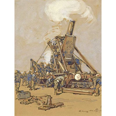 Cheffer Artillery Gun Preparation WWI War Painting Large Print Poster Wall Art Decor Picture