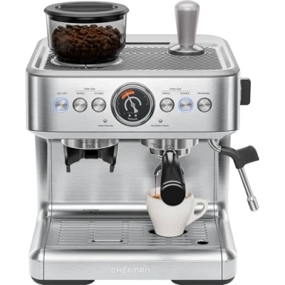Chefman Crema Supreme 15 Bar Espresso Machine with Milk Frother, Barista Steam Wand, Professional Coffee Maker Grinder, 30 Grind Settings, 3L Removable Water Tank Stainless Steel