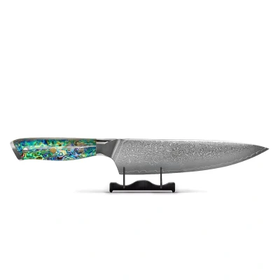 Chef's Knife Damascus 20 cm Steel In Luxury Gift Box Mother of Pearl Jewels Shinrai Knives
