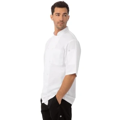 MAXIMUM DURABILITY: Made with a polycotton blend (65 percent polyester / 35 percent cotton), this chef's jacket is built to withstand the demands of a busy kitchen CONVENIENT STORAGE: Equipped with a thermometer and left chest patch pockets, providing instant access to essential kitchen tools and accessories EXTRA PROTECTION: The double-breasted design offers added protection to the torso, keeping chefs safe and comfortable during busy shifts STAY COOL IN HOT KITCHENS: Featuring the innovative cool vent system, this jacket helps to regulate body temperature and keep staff cool even in the hottest kitchen conditions OPTIMAL AIR CIRCULATION: The short-sleeved design allows for improved airflow, ensuring maximum comfort throughout long shifts CLASSIC AND SOPHISTICATED LOOK: The white colourway gives a timeless and professional appearance, suitable for any culinary setting UNIVERSAL FIT: Designed with a unisex fitting, this jacket is perfect for multiple staff members and offers a comfortable and flattering fit for both men and women RECOGNIZED QUALITY: Accredited by the craft guild of chefs, ensuring exceptional quality and performance