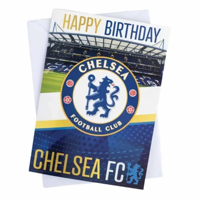 Chelsea FC Birthday Card, Blue Gold White, 22 cm x 12