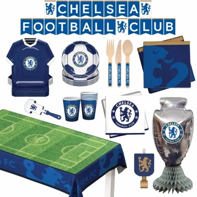 Chelsea FC Official Party Supplies Box for 6 guests All in one 75 pcs incl. Disposable Tableware w/ Cutlery, Decorations & Favors Perfect Matchday Birthday Celebrate (75)