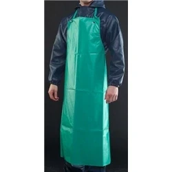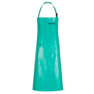 Tough, High tear and Abrasion resistant green PVC Long-lasting, re-usable protection Sewn on ties with fixlock at neck Excellent resistance against certain acids, alkalis and common industrial chemicalsApplications Chemical Cleaning Chemical Site Handling Food Industry Heavy Industry Oil and Gas Petrochem Refining Shipping Tank Cleaning EN 14605:2005+A1 2009 Protective Clothing against Liquid Chemicals