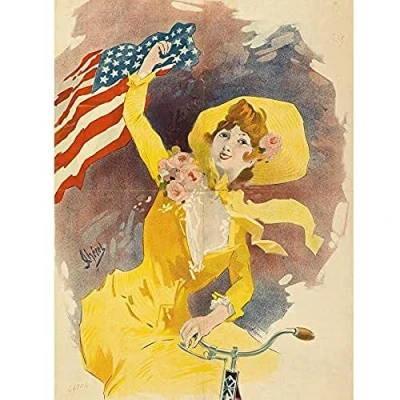 Cheret Cleveland Cycles Fahrrad USA Flagge Werbung Kunstdruck Leinwand Premium Wanddekoration Poster Wandbild