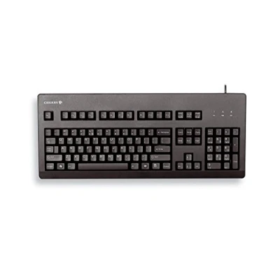 Mechanical keyboard with cable: Timeless design, durable, robust construction and reliable in use - ideal for industrial applications High-quality mechanical CHERRY MX BLACK switches: Powerful and direct typing feel with linear switching characteristics (no click) and more than 100 million actuations per key Designed for permanent use: Individual keys with gold crosspoint contacts (CHERRY MX technology) ensure permanently reliable switching performance Programmable keys: Selected keys can be freely programmed on 3 levels (single actuation, combined with ‘CTRL’, combined with ‘SHIFT’) using KeyM@n software Flexible use: Thanks to the practical USB connection, the Mechanical Keyboard can be easily used on PCs and Macs (incl. adapter for PS/2 interface)