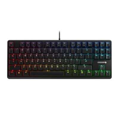 Mechanical wired gaming keyboard without numeric keypad: Space-saving design – suitable both for gamers and frequent typists in the office and industrial sector High-quality mechanical CHERRY MX SILENT RED switches: Smooth and direct typing experience with linear switching (no clicking) and more than 50 million strokes per key Vivid RGB background lighting in over 16 million colours: Numerous integrated colour and lighting effects (individually customisable with CHERRY UTILITY software) Useful gaming functions: Full N-key rollover (all keys read at the same time), anti-ghosting (no wrong inputs) + WIN key lock for game mode Durable key labelling: Even after years of use, the keys on this TKL keyboard are still easy to read and do not fade thanks to their special laser labelling.