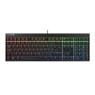 Classic wired gaming keyboard with proven CHERRY MX2A technology: Timeless, minimalist look, designed in Germany - completely focussed on functionality High-quality mechanical CHERRY MX2A RED switches: Smooth and direct typing feel with linear switching characteristics (no click) and more than 100 million actuations per key Vivid RGB backlighting with over 16 million colours: Numerous integrated colour games and lighting effects (individually programmable with the CHERRY UTILITY software) Useful gaming functions: Full N-key rollover (all keys are read out simultaneously), anti-ghosting (no incorrect entries) + WIN key lock for game mode Enhanced comfort: Matching wrist rest available as a separate accessory (CHERRY AC 2.3) - relieves strain on the wrists, especially during long gaming sessions or on long working days