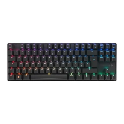 Wireless, rechargeable gaming keyboard in tenkeyless size with sturdy aluminium housing and intelligent charging technology: Rechargeable even while playing! Absolutely flexible triple-mode connection: Bluetooth, 2.4 GHz RF and cable technology - operate several devices simultaneously and switch back and forth at the touch of a button High-quality mechanical CHERRY MX2A RED switches: Smooth and direct typing feel with linear switching characteristics (no click) and more than 100 million actuations per key Vivid RGB backlighting with over 16 million colours: Numerous integrated colour games and lighting effects (individually programmable with the CHERRY UTILITY software) Convenient: Super-fast gaming mode (latency under 1 ms!), full N-key rollover (all keys are read simultaneously), anti-ghosting (no incorrect entries) + WIN key lock
