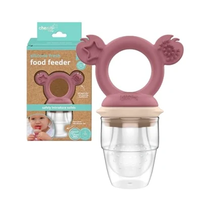 Cherub Baby Non Toxic BPA Free Silicone Fresh Food Feeder, Fruit Easy to Hold, Gentle on Little Mouths, Self Feeding, Dishwasher, Freezer and Steriliser Safe, 4 Months+ (Dusty Rose/Sand)