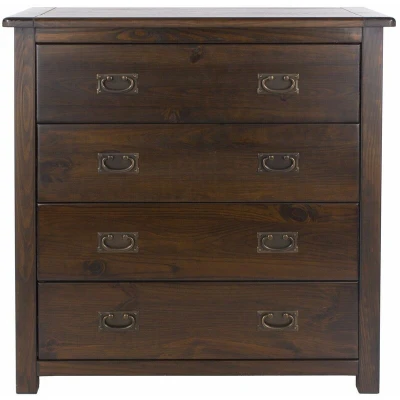 Chest of 4 Drawers Solid Pine Dark Wood Dresser Metal Handles Lacquered Finish