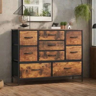 Spacious 9-Drawer Dresser: This chest of drawers features 9 deep removable drawers (2 large + 4 medium + 3 small) for organizing lingerie, blankets, kids’ clothes, accessories, linens and toys. Measuring 39.4"L x 11.8"W x 29.9"H, its slim, space-saving profile fits bedrooms, hallways, nurseries or dressing rooms, with a smooth top ideal for lamps, clocks and daily necessities. Versatile & Multifunctional bedroom drawers: This modern fabric drawers acts as a sleek, functional storage solution that seamlessly fits into closets, hallways, living rooms, bedrooms, offices, nurseries and entryways. The drawer organiser even doubles as a handy TV stand with storage drawers, maximizing utility to meet all your home storage and display needs. Durable & Safe Bedroom Storage Unit:Crafted with a reinforced metal frame and water-resistant laminated MDF top, this bedroom storage unit ensures long-lasting stability for daily use. Sturdy steel crossbars prevent drawer sagging over time, while adjustable feet keep it balanced on uneven floors and an included anti-tip kit eliminates accidents, safeguarding your family. Durable Breathable Fabric Dresser: Featuring breathable, premium non-woven fabric construction, these Storage Organizer Unit are built to last and simple to maintain—just wipe clean with a damp cloth and air dry. Perfect for a large chest of drawers, they offer generous storage space for stowing clothes, bedding, and household essentials, blending practicality with hassle-free upkeep. Easy Assembly bedroom drawers: This bedroom storage comes with clear instructions, an installation video, labeled parts, and all necessary hardware. Assembly is quick and simple—requiring only a few screws—and easy enough to complete independently, even for a single person.