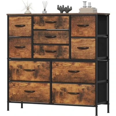 Spacious 9-Drawer Dresser: This chest of drawers features 9 deep removable drawers (2 large + 4 medium + 3 small) for organizing lingerie, blankets, kids’ clothes, accessories, linens and toys. Measuring 39.4"L x 11.8"W x 29.9"H, its slim, space-saving profile fits bedrooms, hallways, nurseries or dressing rooms, with a smooth top ideal for lamps, clocks and daily necessities. Versatile & Multifunctional bedroom drawers: This modern fabric drawers acts as a sleek, functional storage solution that seamlessly fits into closets, hallways, living rooms, bedrooms, offices, nurseries and entryways. The drawer organiser even doubles as a handy TV stand with storage drawers, maximizing utility to meet all your home storage and display needs. Durable & Safe Bedroom Storage Unit:Crafted with a reinforced metal frame and water-resistant laminated MDF top, this bedroom storage unit ensures long-lasting stability for daily use. Sturdy steel crossbars prevent drawer sagging over time, while adjustable feet keep it balanced on uneven floors and an included anti-tip kit eliminates accidents, safeguarding your family. Durable Breathable Fabric Dresser: Featuring breathable, premium non-woven fabric construction, these Storage Organizer Unit are built to last and simple to maintain—just wipe clean with a damp cloth and air dry. Perfect for a large chest of drawers, they offer generous storage space for stowing clothes, bedding, and household essentials, blending practicality with hassle-free upkeep. Easy Assembly bedroom drawers: This bedroom storage comes with clear instructions, an installation video, labeled parts, and all necessary hardware. Assembly is quick and simple—requiring only a few screws—and easy enough to complete independently, even for a single person.