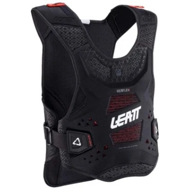The ReaFlex Chest Protector is a lightweight impact protector with padded side protection. ReaFlex is a reactive impact gel that absorbs energy under impact, and is extremely comfortable due to its flexibility.The chest protector has a slim, ergonomic design, with a longer back to provide coverage all the way down. Ventilation slots ensure maximum airflow to keep you cool on those all-day rides. The BraceOn system allows for a seamless neck brace fit.Key Features:Total Leatt® protection score of 9 pointsReactive, Flexible, Impact Gel ProtectionSlim ergonomic designCE tested and certified as impact protection:Front EN1621-3 Level 1Back EN1621-2 Level 1New slimmer BraceOn™ neck brace fitting systemVentilation slots for maximum airflow3D design ensures a comfortable, great fitPadded flanksFFM - French Motorcycle Federation CertifiedWeight: From 727g (1.06lbs)Sizing: - 160-196cm (5ft3”-6ft 5”)- S/M - L/XL - XXLAvailable as body protectorPlastic-free packaging"The ReaFlex Chest Protector is a lightweight impact protector with padded side protection. ReaFlex is a reactive impact gel that absorbs energy under impact, and is extremely comfortable due to its flexibility. The chest protector has a slim, ergonomic design, with a longer back to provide coverage all the way down. Ventilation slots ensure maximum airflow to keep you cool on those all-day rides. The BraceOn system allows for a seamless neck brace fit.