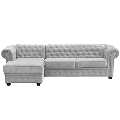 Chesterfield Style Corner Sofa Set 3+2 Seater Armchair Light Grey Fabric (Left Hand Corner)