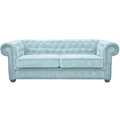 Chesterfield Style Sofa bed Venus 3 Seater 2 Fabric Light Blue Cream Settee (2seater, Blue)