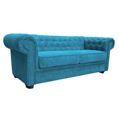 Chesterfield Style Sofa bed Venus 3 Seater 2 Fabric Turquoise Settee (3seater, Ocean)