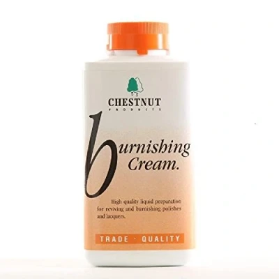 Chestnut Products Burnishing Cream, 500ml A finely abrasive liquid for burnishing oils and lacquers to a bright gloss finish. Reviving the lustre of previously polished surfaces Apply with a cloth. Gives a great finish when used on Friction Polish applied over burnished Melamine Lacquer