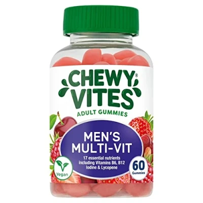 MEN’S VITAMINS: Chewy Vites Men’s Multi-Vitamin has been carefully crafted with the right nutrients to help men of all ages maintain their health and Vitality. ESSENTIAL NUTRIENTS: Each gummy contains 17 nutrients to support the normal functioning of the immune system; reduce tiredness and fatigue and maintain energy-yielding metabolism. VITAMINS: Including Vitamins B6, B12, Iodine & Lycopene. VEGAN: Suitable for vegans and vegetarians. RECOMMENDED DAILY DOSAGE: Recommended for adults; 2 Gummies per day; Do not exceed recommended daily dosage.