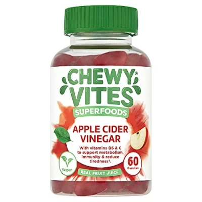 Chewy Vites Superfoods Apple Cider Vinegar Gummies, 60 Vitamin 500 mg Vinegar, C, Real Fruit Juice, 1 Month Supply, Vegan, Delicious Flavour