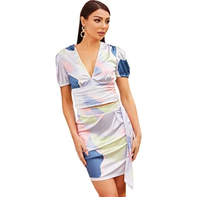 This top is everything we're currently loving. Featuring a lilac abstract print, satin feel material and a cropped fit. Pair with the matching skirt and heels for a standout look, or with jeans to give the top a refresh.